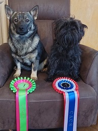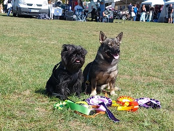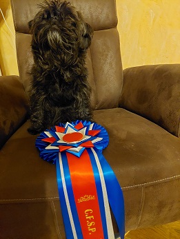 * août 2024 - EXPOSITION CANINE NATIONALE de Romorantin - CACS ![]() * septembre 2024 - EXPOSITION CANINE NATIONALE de Fontainebleau - CACS, Meilleur de race * octobre 2024 - NATIONALE D'ELEVAGE du Club Français de SCHNAUZER et PINSCHER de Poitiers - CACS * mars 2025 - EXPOSITION CANINE INTERNATIONALE de Anvers (Belgique) - CACS, Meilleur de race. Le petit Voldemar a aussi gagné son premier trophée ![]()
